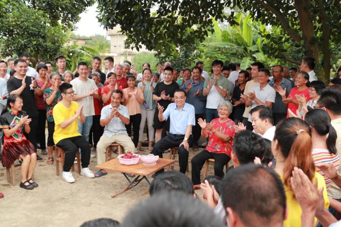在陆川县东西村,李克强走进甘蔗田与蔗农交谈。他说,蔗糖是食品等产业重要原料,全国每三勺糖就有两勺来自广西,你们辛苦劳动为千家万户送去了甜。国家将在甘蔗良种培育、增强糖业抗风险能力上加大支持。李克强与村民围坐拉家常。有大学毕业生说,在附近创业办企业带动了300人就业,李克强称赞这让群众能就近打工挣钱,又照顾老人孩子。针对乡亲们的期盼,李克强说,现在生活好起来,有很多新需求,要问政于民,尽力而为、量力而行,把群众盼望的事情办好。