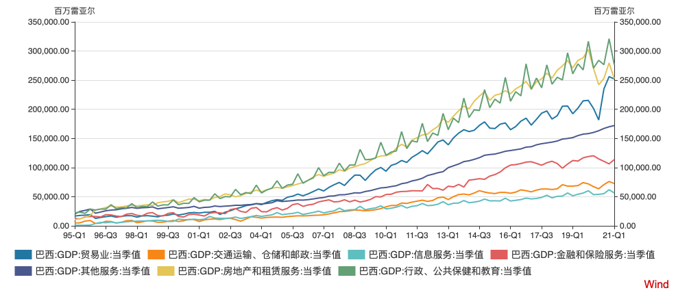 业内人士表示,巴西服务业占该国GDP比重70%以上,对巴西经济发展举足轻重。随着巴西疫情的减缓和整体经济的复苏,巴西服务业也将步入发展轨道,预计2021年巴西服务业有望恢复增长。
