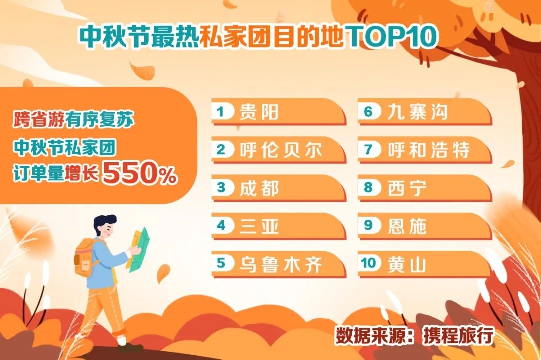 携程表示,为积极响应文化和旅游部近日颁发的《旅行社新冠肺炎疫情防控工作指南(第三版)》,携程在中秋之际积极推广私家团、精致小团等小规模团队游产品,9月6日预订中秋节私家团订单量比8月20日增长550%。