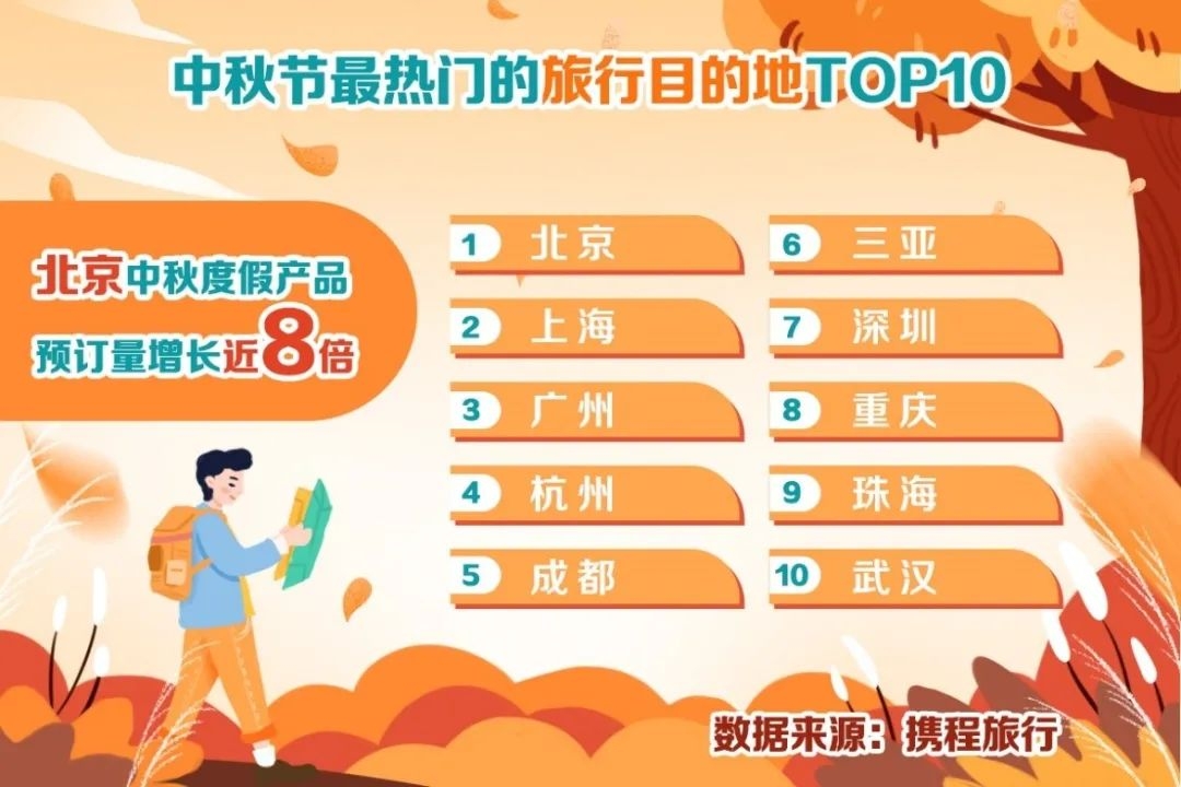 中秋旅游有望为国庆假期旅游市场“开个好头”。携程研究院行业分析师方泽茜表示,依照当前的复苏趋势,中秋节有望再次迎来跨省游复苏的新拐点,到“十一”黄金周期间,跨省游有望出现强势增长。