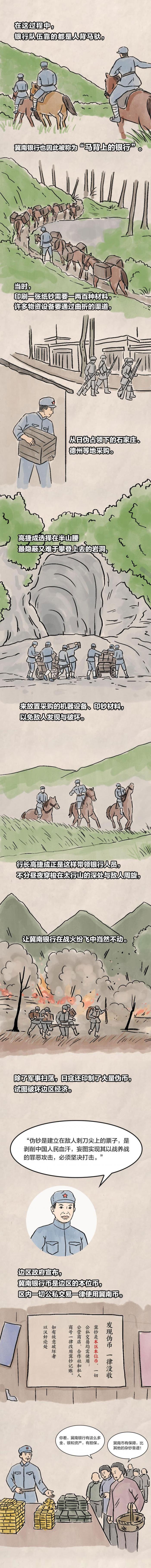 上期,我们讲述了窑洞银行的故事。本期,我们来看“马背银行”在首任行长高捷成的带领下,躲避敌军的围追堵截,用人背马驮运载材料,在太行山深处印钞并发行冀南币的故事。