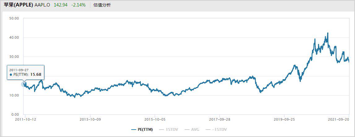更危险的一点在于,苹果已经透支了估值。2020年之前的十年,苹果的股票处在良性增长通道,所谓良性是市盈率保持在合理区间(20倍以下),股价由业绩驱动,但去年的大放水把公司的市盈率最高拉到40倍以上,今年上半年有所回落,但仍处在历史高位。