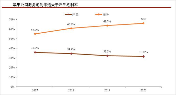 单看利润率水平,软件和服务业务的毛利率是硬件产品的两倍还多,且二者的差距还在不断扩大,从理论上来说,转型之后的苹果更具想象空间,但理论并不代表现实。