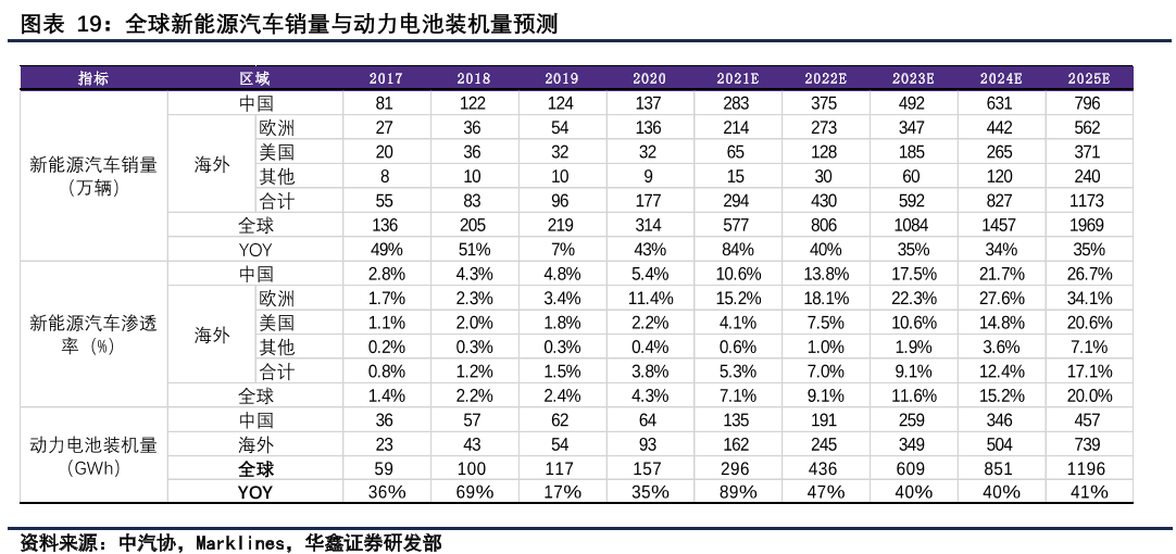 华鑫证券预计2025年全球动力电池装机量达到1199GWh,2020-2025年CAGR达到50%;其中2025年中国动力电池装机量达到460GWh,2020-2025年CAGR为48%。