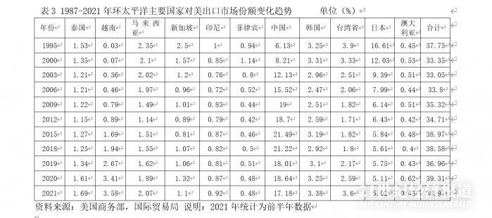 当今世界,没有哪一个国家是孤岛,都是庞大网络上的一个节点。美国也如此。中国和美国合则双赢,争则俱败。2018年和2019年,美国挑起的贸易战使世界经济增长减速,本国经济也深受影响。中国处于全球供应链的中心地位是全球经济一体化选择的结果,同时也惠及了许多国家和地区。尽管美国从中国的进口额在减少,但中国依然是美国最大的进口来源地,具有不可替代的地位。如表3,最近二十多年来,环太平洋主要国家在美国进口贸易中的市场份额并没有太大变化,1995年为37.75%,而2020年为39.31%。中国对美出口贸易并没有改变美国进口贸易的地域格局。另据美国相关研究,美国从中国进口的商品中60%左右为中间品,即为美国国内生产和出口所需要的原料、半成品或配件。美国政府对华贸易限制和高关税政策已严重伤害本国企业的国际竞争力。中国对美出口减少,但对其它国家出口增加,而这些国家增加了对美出口,供应链扭曲提高了美国个人和企业消费者成本。芯片业短缺原因大致如此。