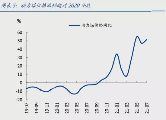 而由于煤炭产能受限,6-7月动力煤价格同比上涨50%左右,涨幅明显高于2020年底。