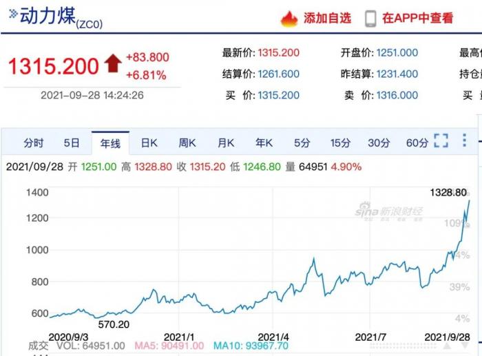 目前正处于传统意义上的用煤淡季,但市场却呈现出异常火热的态势。目前,动力煤期货主力合约价格已经突破1300元/吨的大关,实际市场价格约在1600元/吨左右,而往年同期价格不过500-600元/吨。涨幅达300%左右。