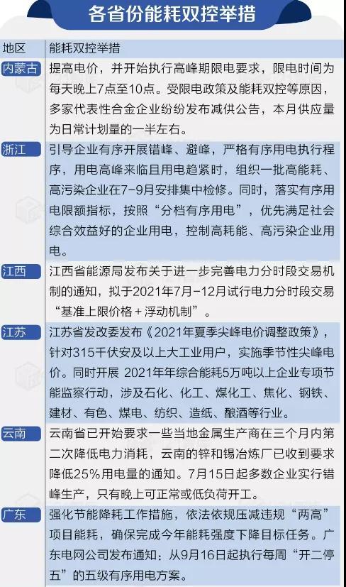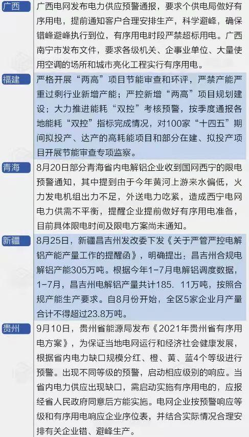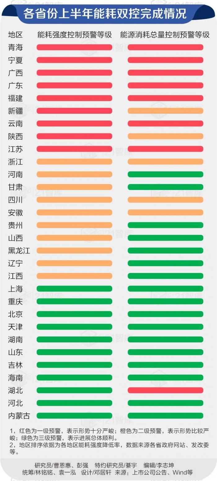 但自8月下旬以来,国家发改委点名多个省区能耗双控工作未达标,并进行预警。此后,能耗双控工作紧张的地区,陆续开始在三季度末实施限电限产,试图冲刺完成指标。