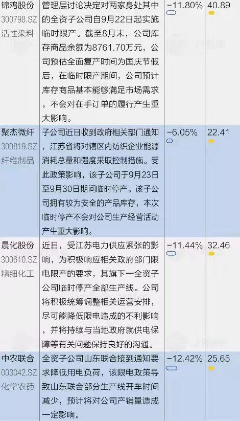 此后,帝欧家居(002798.SZ)、晨化股份(300610.SZ)、中农联合(003042.SZ)、优彩资源(002998.SZ)、利民股份(002734.SZ)、润丰股份(301035.SZ)等多家上市公司均表示,受限电影响,生产将分别受到不同程度的影响。