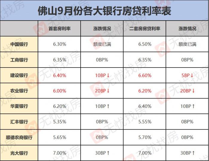 日前,无忧找房大平台发布数据显示,9月份广州、佛山等地区,多家银行的房贷利率已经不变甚至下调。其中,广州方面,目前中国银行、农业银行、广州银行、招商银行、广大银行等房贷利率已经较过往有所下降,其中光大银行的首套房利率下降至5.60%,下降了40BP;而广州银行的首套房利率已经降到5.45%,二套房利率降至5.65%;佛山方面,建设银行、农业银行的房贷利率有所下调,农业银行的首套和二套房下降较多,均为20BP,另有3家银行的房贷利率保持不变,2家银行有所上调。