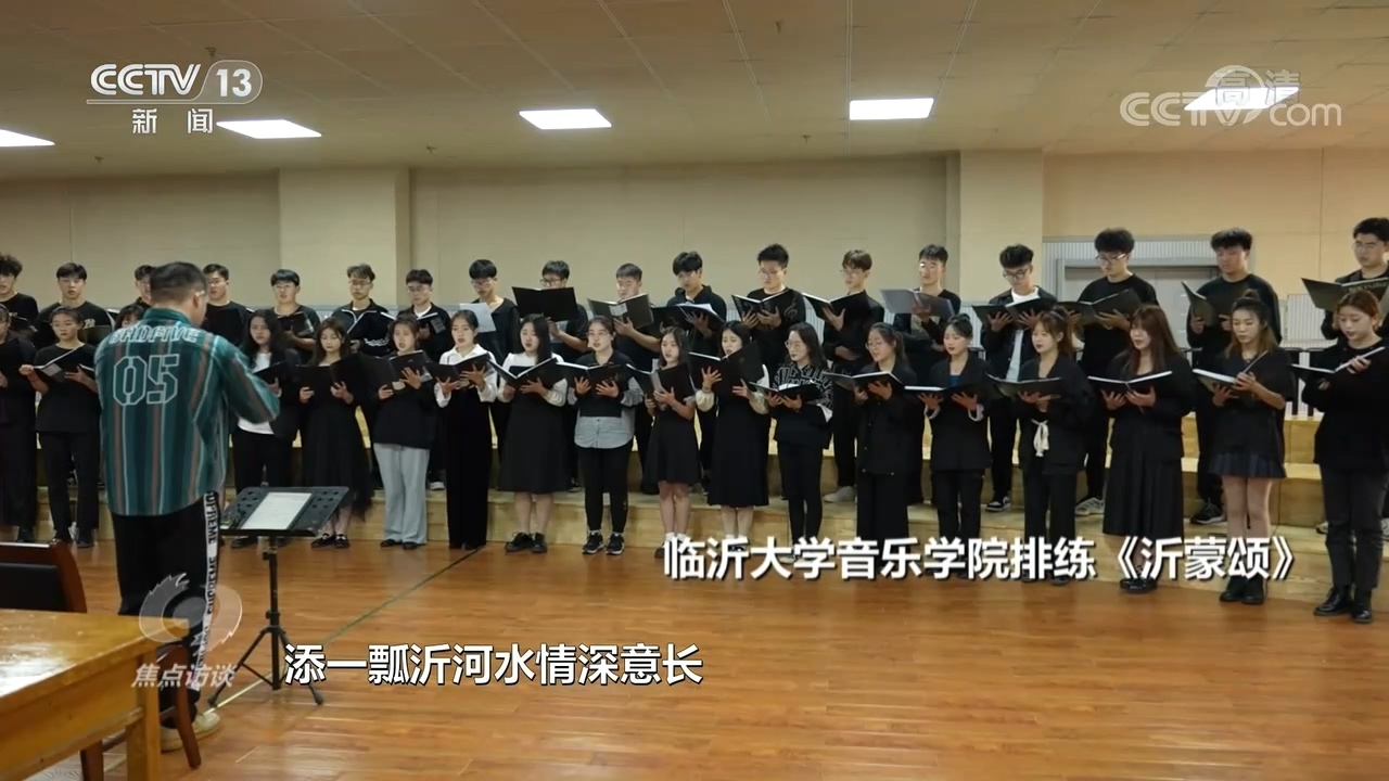 临沂大学音乐学院的同学们正在排练合唱《沂蒙颂》,准备在国庆期间汇报演出。巍巍蒙山高,悠悠沂水长。位于沂蒙山区的临沂是全国闻名的革命老区。在抗日战争和解放战争时期,有21.4万人参军参战,120万人次拥军支前,有10.5万名革命烈士献出了宝贵生命。《沂蒙颂》就是以沂蒙老区的拥军故事为题材,谱写了军民之间的鱼水深情。