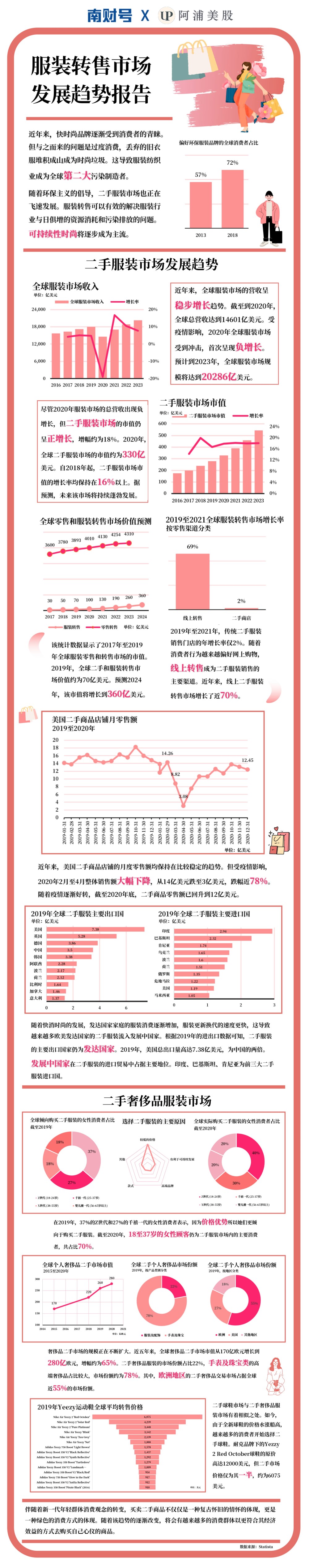 近年来,快时尚品牌逐渐受到消费者的青睐。但与之而来的问题是过度消费,丢弃的旧衣服堆积成山成为时尚垃圾。这导致服装纺织业成为全球第二大污染制造者。随着环保主义的倡导,二手服装市场也正在飞速发展。服装转售可以有效的解决服装行业与日俱增的资源消耗和污染排放的问题。可持续性时尚将逐步成为主流。