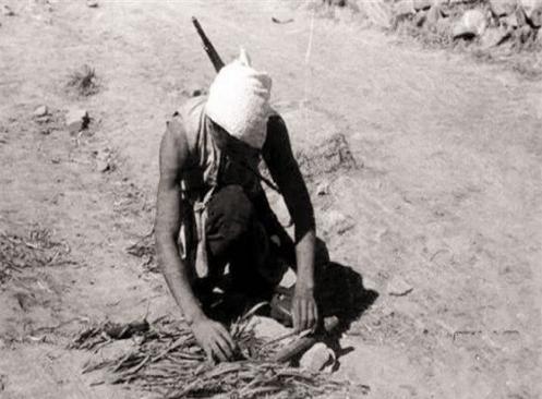 △地雷战真实照片,民兵在预埋地雷。