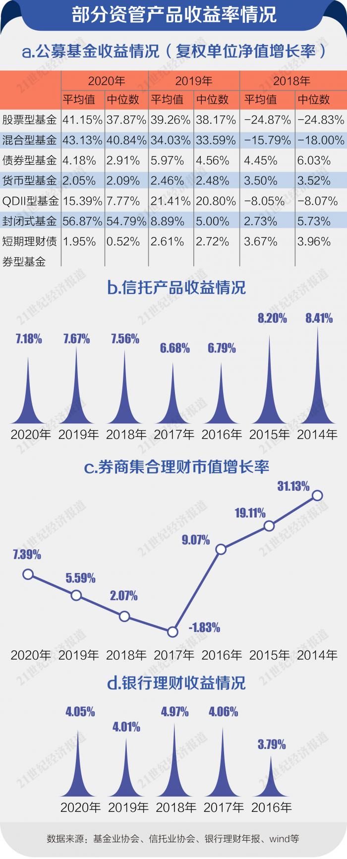 银行理财当中,2020年封闭式产品的兑付收益率为4.05%,高于2019年(4.01%)水平,但仍低于2018年之前的水平。