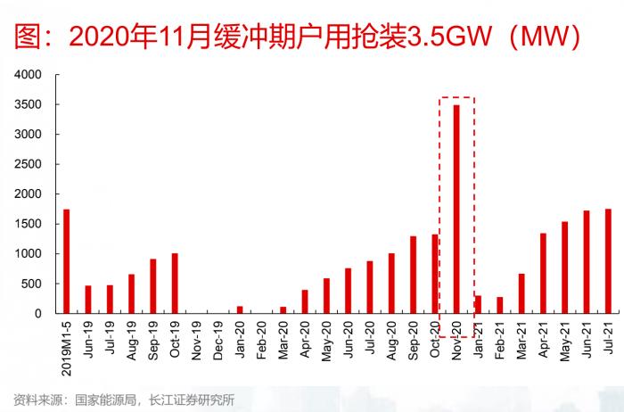 对于2022年,此刻更应当充分重视。核心在于当前高涨价格必然导致明年更大幅度的价格中枢下移。故而明年在限电缓解、原材料供应得保障的背景下,项目收益率得到改善,装机动力更强。在此背景下,长江证券上调明年国内装机至80-100GW,同比增速有望超40%。