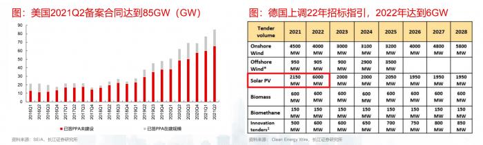 从项目备案和招标的角度,美国、德国备案及招标规模皆可观,亦对2022年高增预期形成有力支撑: