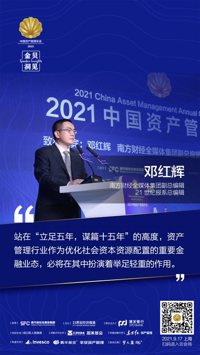 作为资管行业一年一度的盛会,由数字化智库型财经媒体领跑者《21世纪经济报道》主办的2021中国资产管理年会于9月17日在上海举办,本届年会以“经济新动能、资管新趋势”为主题,邀请来自监管机构、经济学家及顶尖金融机构的嘉宾,共同探讨资产管理行业发展的新趋势。
