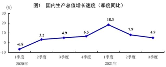 10月18日,国家统计局公布数据显示,初步核算,前三季度国内生产总值(GDP)为82.31万亿元,同比增长9.8%,两年平均增长5.2%。三季度同比增长4.9%,两年平均增长4.9%。