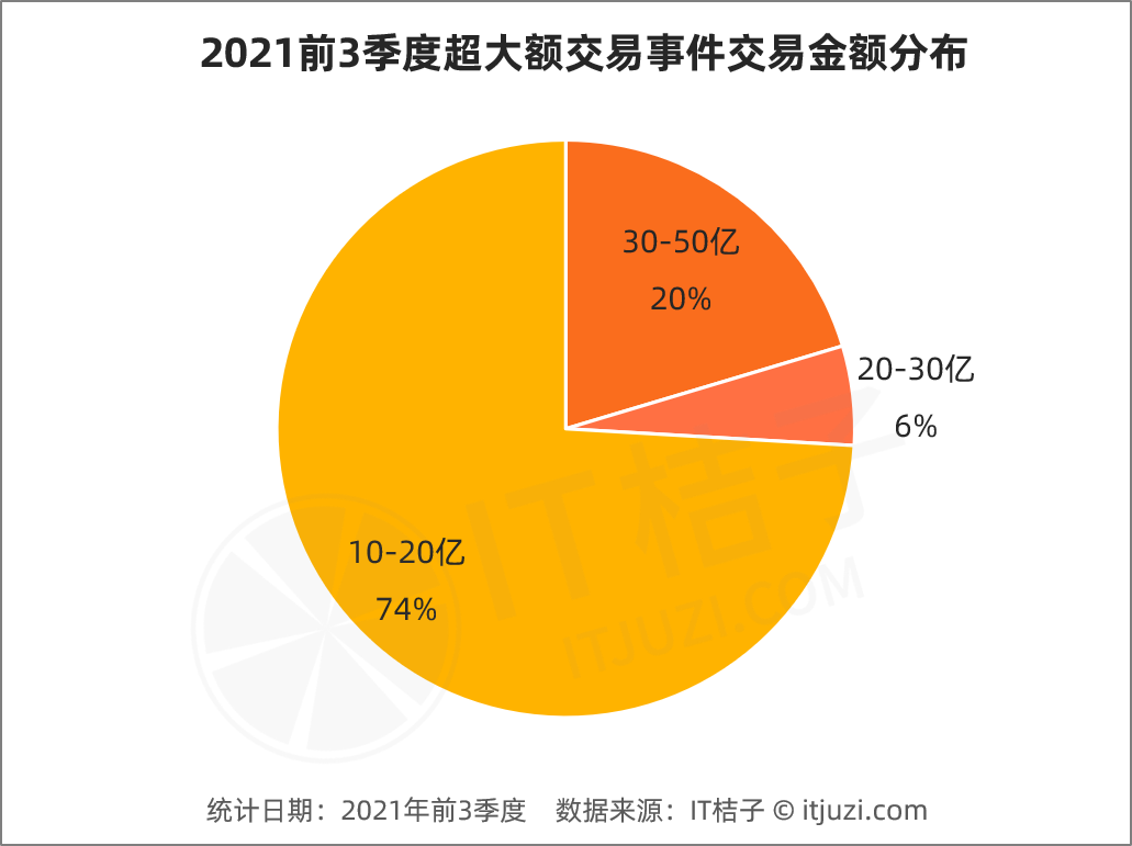 单笔交易金额在 20-30 亿元的仅有 3 起,占比 6%;其余 40 起金额集中在 10-20 亿元人民币,占比 74%。
