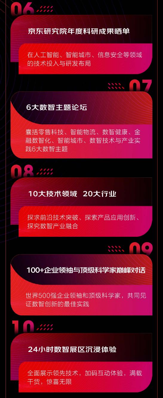 据官网显示,本届JDD大会在主论坛之外,还设置了6个平行主题论坛,覆盖零售科技、智能物流、数智健康、金融数智化、智能城市、数智技术与产业实践几大领域,将围绕“科技向上”对京东最新的技术研究成果以及数智化产业实践进行充分展现。