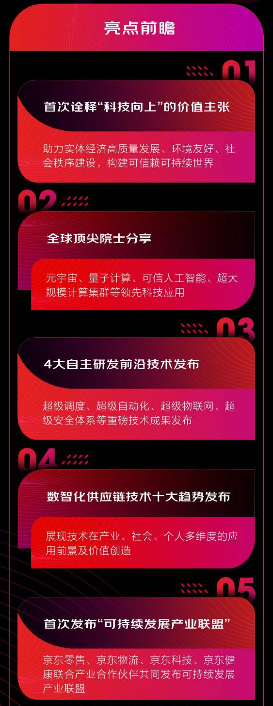 科技的进步不仅带来了生产效率的提升,更推动了社会公平、环境友好、生活的美好。在本次大会上,京东集团将首次诠释“科技向上”的技术价值主张,解读其如何通过技术助力实体经济高质量发展、环境友好、社会秩序建设,构建可信赖可持续世界。