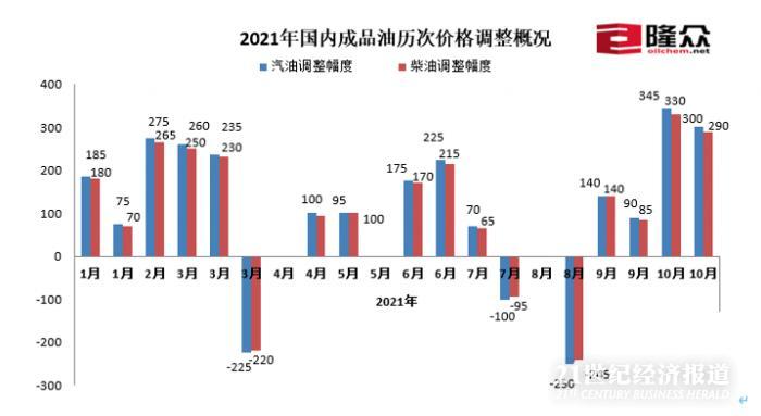 国家发改委消息,10月22日24时起,国内汽、柴油价格按机制分别上调300元/吨和290元/吨;折合升价,92号汽油涨幅0.24元/升,0号柴油涨幅0.25元/升。