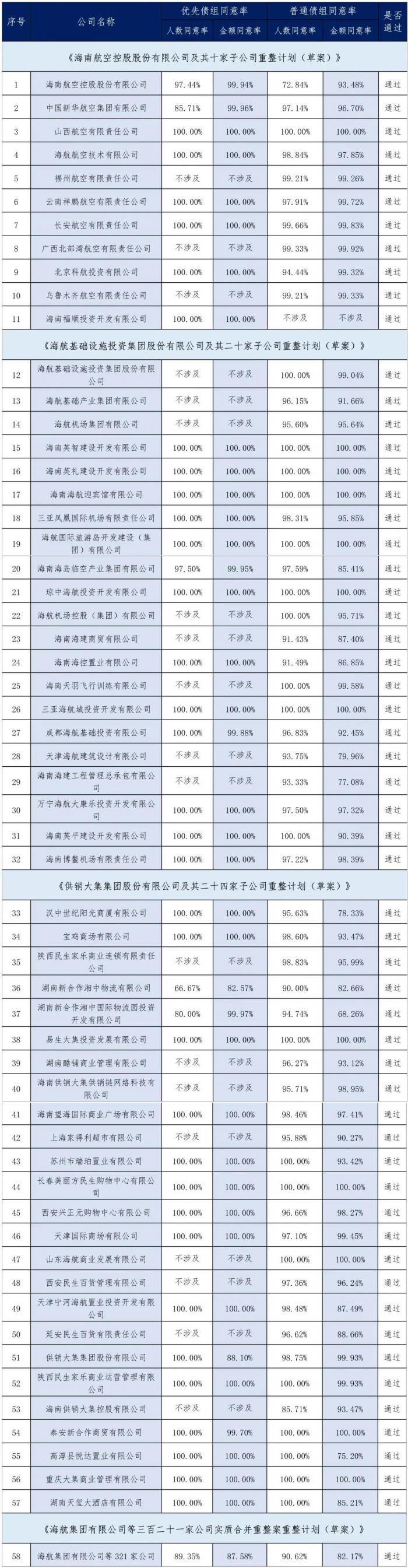 海航集团及相关企业破产重整案的各重整计划(草案)均已获得表决通过