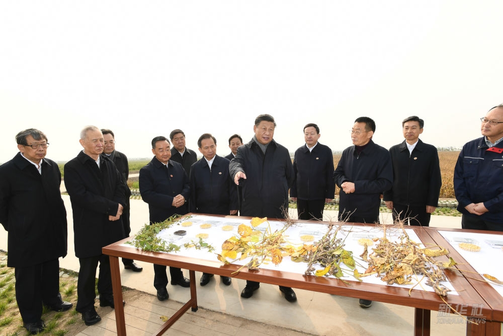 ↑这是座谈会前,习近平21日上午在东营市黄河三角洲农业高新技术产业示范区考察时,走进田间察看大豆长势。