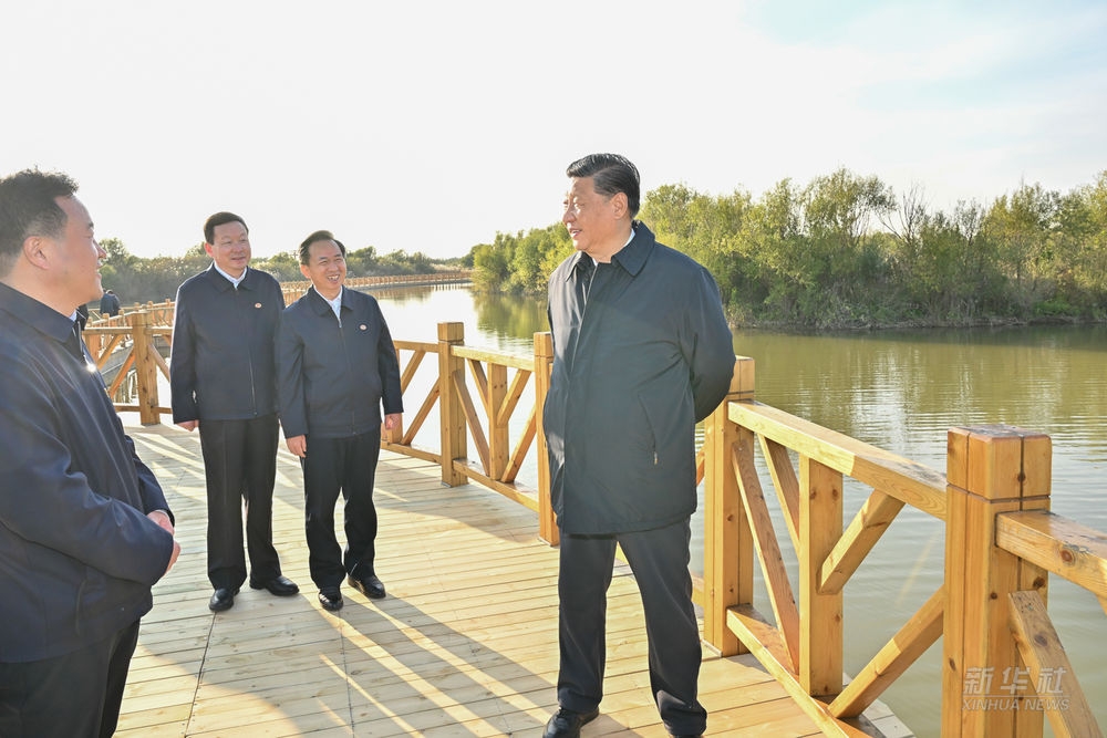 ↑这是座谈会前,习近平20日下午在东营市黄河三角洲国家级自然保护区察看黄河三角洲湿地生态环境。