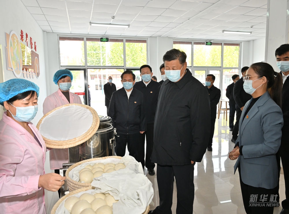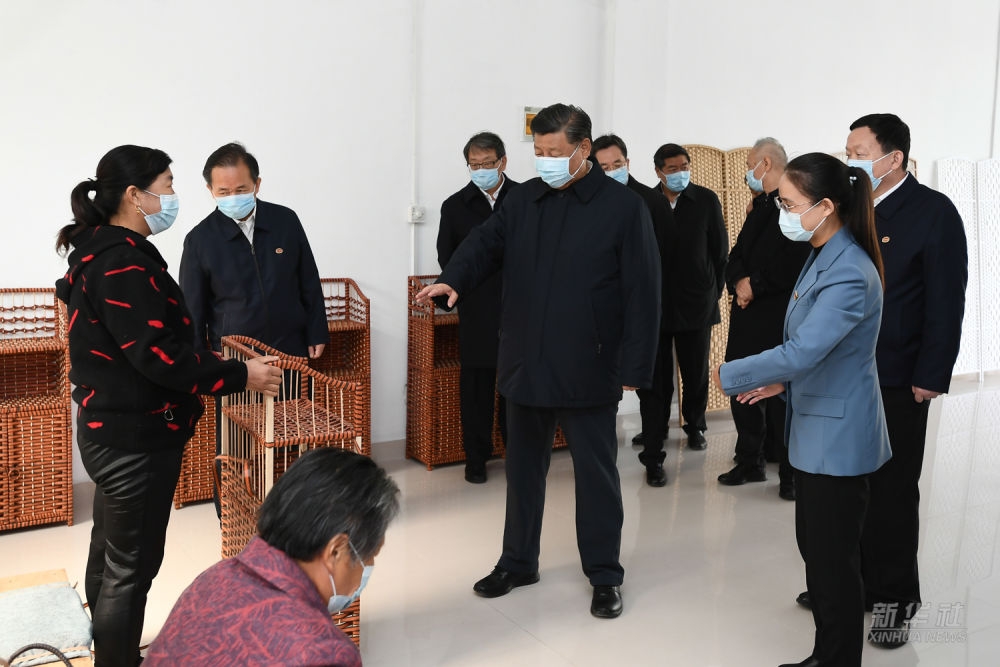 ↑这是座谈会前,习近平21日上午在东营市垦利区董集镇杨庙社区考察。