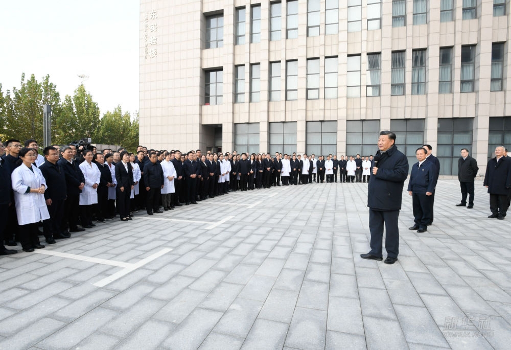 ↑这是座谈会前,习近平21日下午在东营市胜利油田勘探开发研究院页岩油实验室考察自主创新情况。