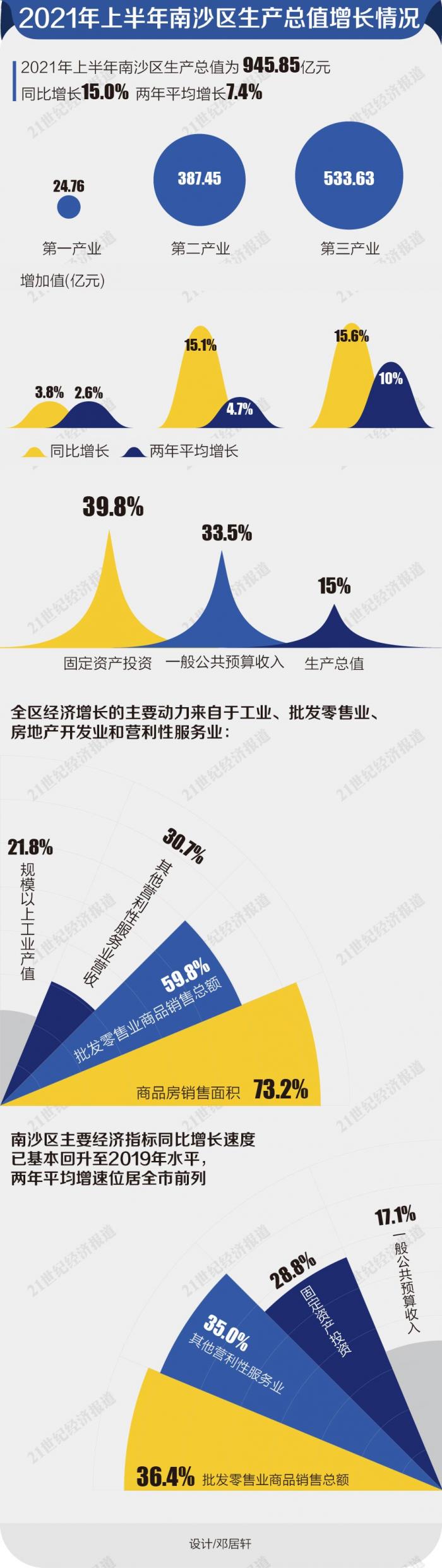 今年上半年,南沙区GDP为945.85亿元,同比增长15.0%,两年平均增长7.4%。从两年平均增速看,南沙区主要经济指标同比增长速度已基本回升至2019年水平,两年平均增速位居全市前列。