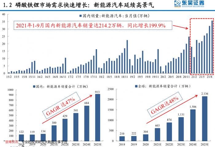 碳酸锂盈利良好:东吴证券测算碳酸锂毛利从2021年初的1.07万/吨,上涨至2021年10月中旬的11.6万/吨。生产1吨磷酸铁锂需要0.22-0.24吨碳酸锂。碳酸锂是磷酸铁锂材料生产中最大的单一原料成本。