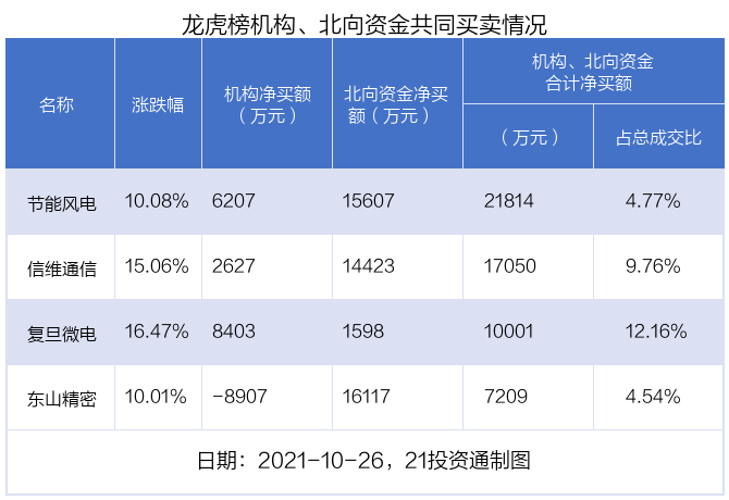 值得注意的是,机构和北向资金共同净买入了节能风电、信维通信、复旦微电等3股;在东山精密上出现分歧,机构净卖出东山精密8907.36万元,北向资金净买入1.61亿元。