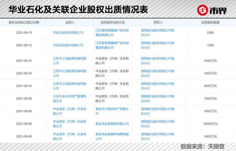 而这些企业出质股权的质权人无一例外均是渤海银行南京分行。即,华之业能源及其关联公司在济民可信集团报案后,仍从渤海银行获得了不超过2.64亿元的融资。