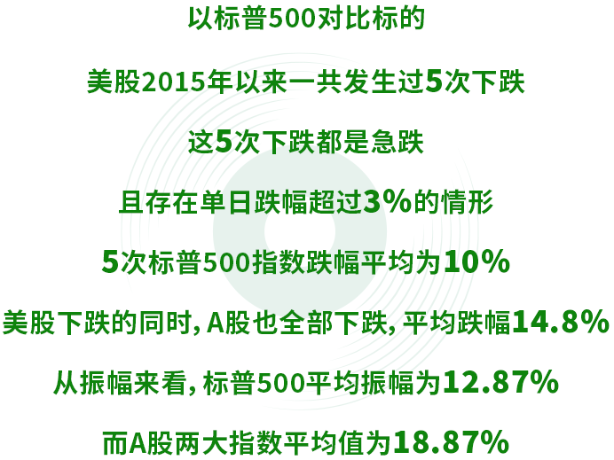 值得注意的是,作为新兴市场,A股更容易出现暴涨暴跌的情况。梳理美股2015年以来出现多次急跌发现,A股往往被之拖累,且短期跌幅更大。