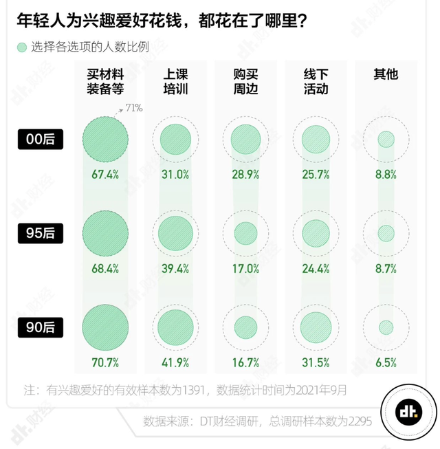 买装备、上课培训、购周边、参与线下活动等等,《2021年Z世代兴趣调查报告》显示,年轻人为兴趣爱好的投入,主要是通过消费获得。越是年轻,直接通过消费来获取文化和品味符号的意愿更高。