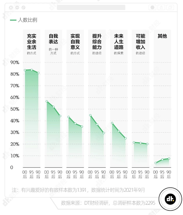 如《2021年Z世代兴趣调查报告》中,指向“兴趣实用化”,兴趣不仅是为了休闲,还要在生活的各个层面上实际有用。即便是文化娱乐项目,年轻人也尝试追逐更丰富、更实用的价值。