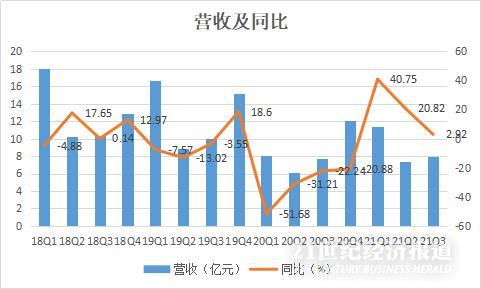 先看营收方面,2021年三季度,张裕A实现营收7.97亿元,同比微增2.92%。由上图可见,自2018年开始,张裕A的营业收入就开始呈震荡下行的走势。