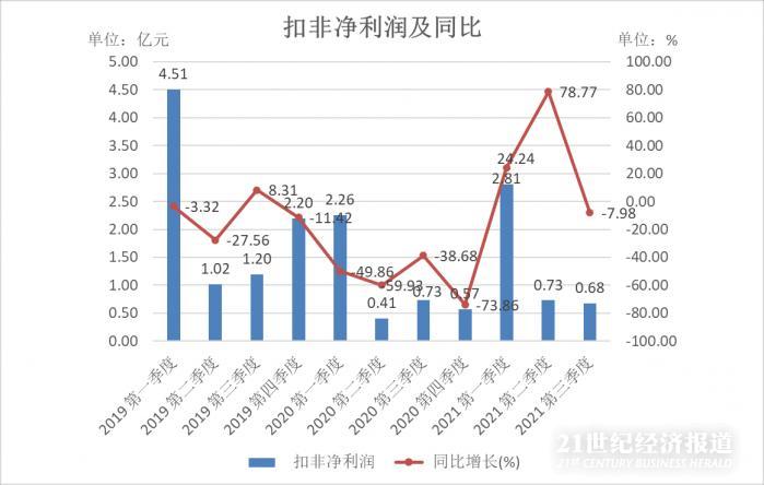 而在利润表现上,公司业绩下滑则更加明显,2021年第三季度,公司实现扣非净利润6755万元,同比下降7.98%。相比于2020年三季度扣非净利润同比两位数以上的大幅下滑,本季度下滑幅度大幅收窄,但对比2020年以前和其他酒水品种的业绩,张裕A仍面临较大压力。