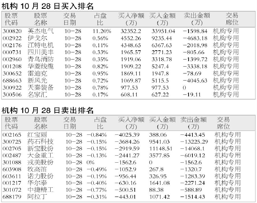 3日二机构买入2.1亿东方电缆,和其它电力相关个股一样,这个票也获得了机构的买入,倒是不意外。一机构买入6400万卖出2000万江特电机,10月18日跌停机构争先出货,昨天跌停不但再无机构止损,反而来了抄底机构,后市应该偏乐观一些的。