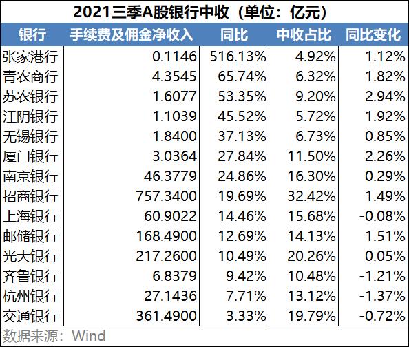 净利润同样受中收拉动的还有上海银行。三季度末,上海银行实现手续费及佣金净收入60.90亿元,同比增长38.30%,占营业收入的比重为14.69%,较上年末提高3.64%。中间业务收入的增长或与财富管理业务的发展有关,2021年1-9月,上海银行实现财富管理中间业务收入11.61亿元,同比增长33.80%。