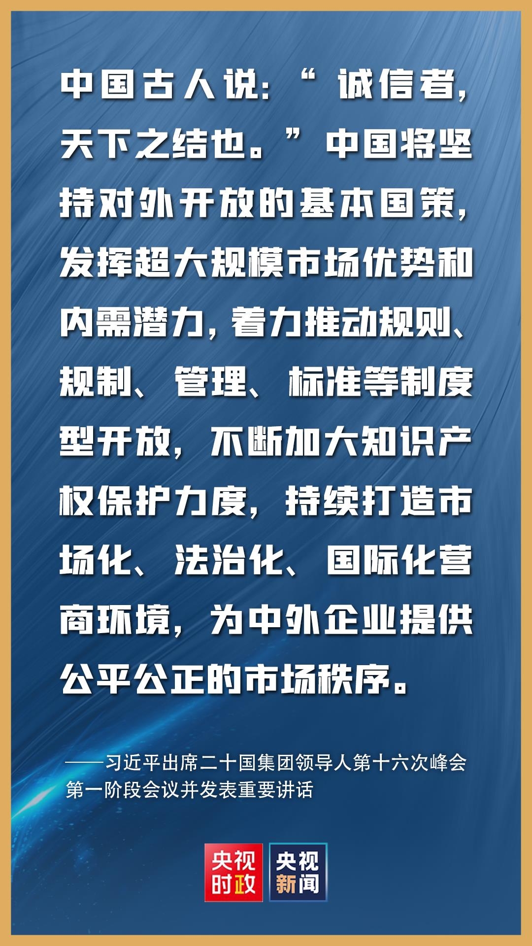 金句来了!习近平在二十国集团领导人第十六次峰会第一阶段会议上的讲话