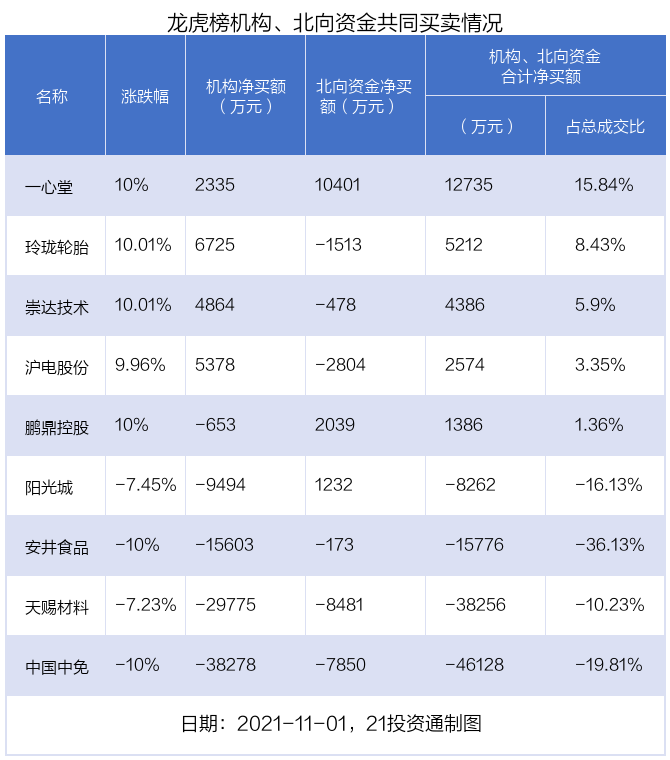 据21投资通(微信号ID:touzit21)智能监测,31只个股龙虎榜出现了机构的身影,北向资金参与龙虎榜中的个股共涉及10只。