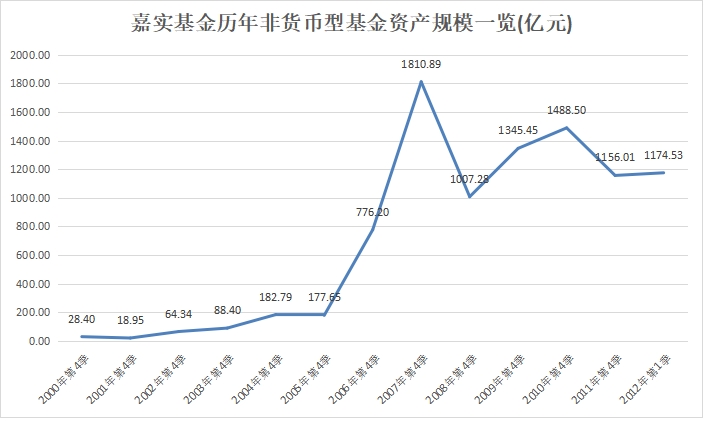 Wind数据显示,在品牌、业绩、销售等多方面综合影响下,李道滨任职嘉实基金期间,嘉实基金非货币基金规模从2000年末的28.40亿元增长至2012年一季度末的1174.53亿元。