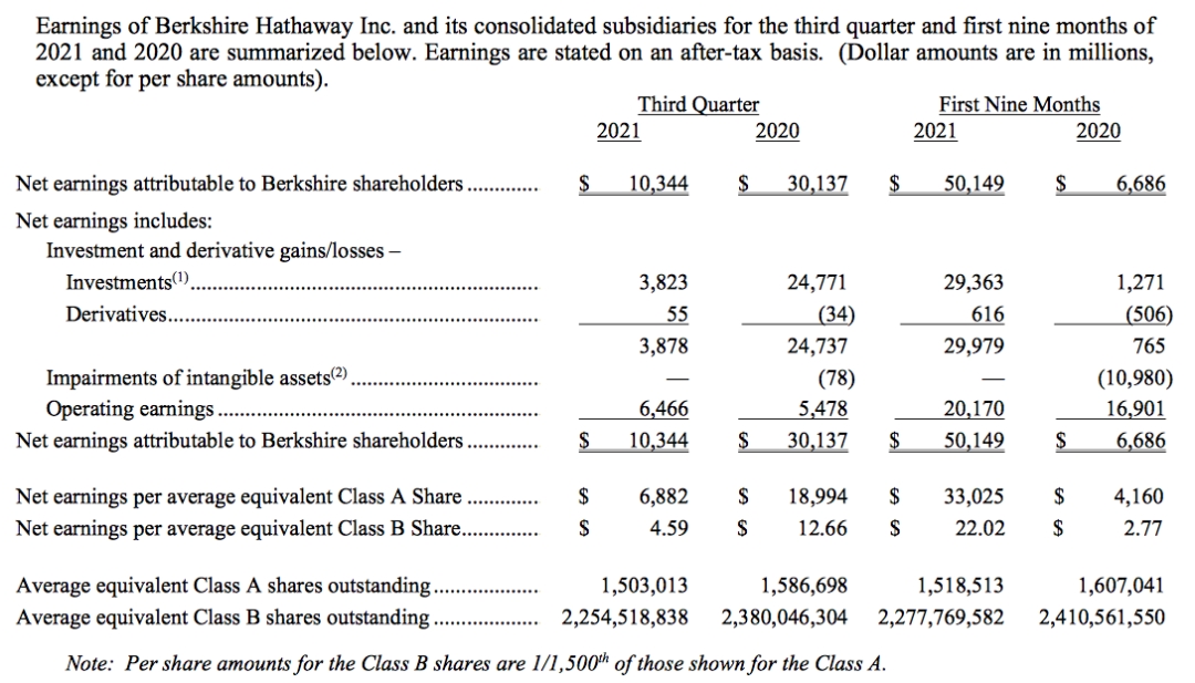据伯克希尔第三季度业绩报告,其报告期净利润同比下滑66%至103.4亿美元。