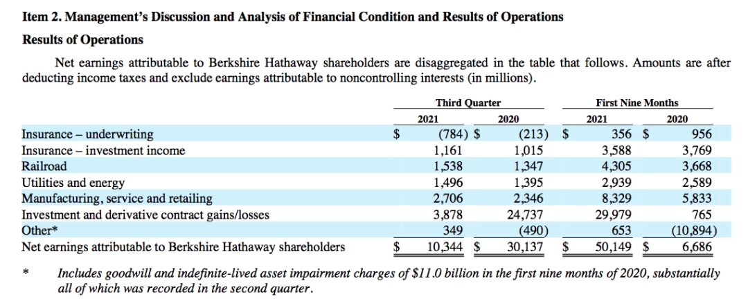 不过,第三季度,伯克希尔哈撒韦旗下铁路、公用事业和能源业务继续保持增长,报告期实现营业利润30.3亿美元,同比增长11%。其中,铁路业务经受住了供应链端的考验,在第三季度同比增长14%至15.4亿美元,创下纪录新高。