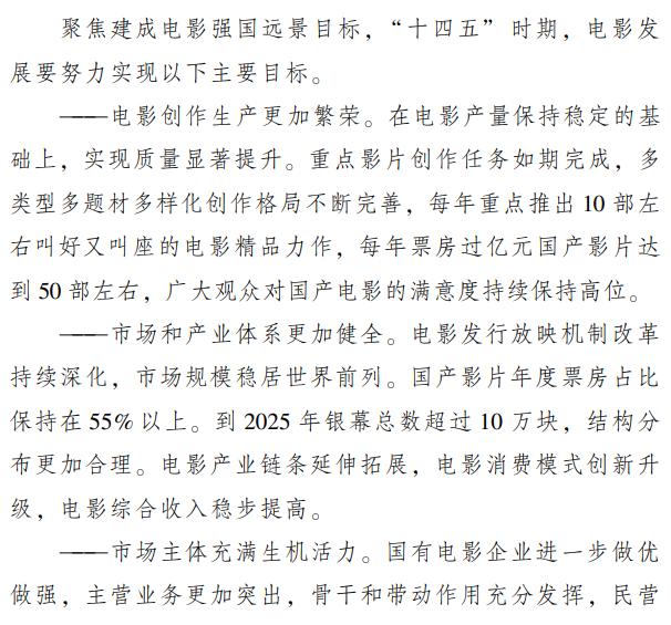 《“十四五”中国电影发展规划》文件截图