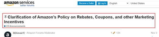 11月3日,因为收到很多卖家关于站外推广激励政策的质疑,亚马逊美国站发布了关于这项政策的澄清公告,特别是通过提供返现、优惠券、折扣等政策。亚马逊表示将严厉打击站外违规引流操作!