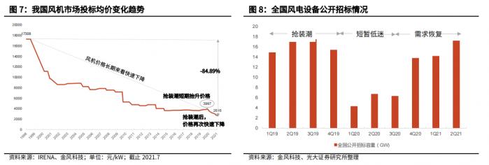风电:机组大型化推动风机价格持续降低,未来若风机(不含塔筒)价格下降到1800元/kW,风电项目总体投资将较2021年上半年继续降低15%。